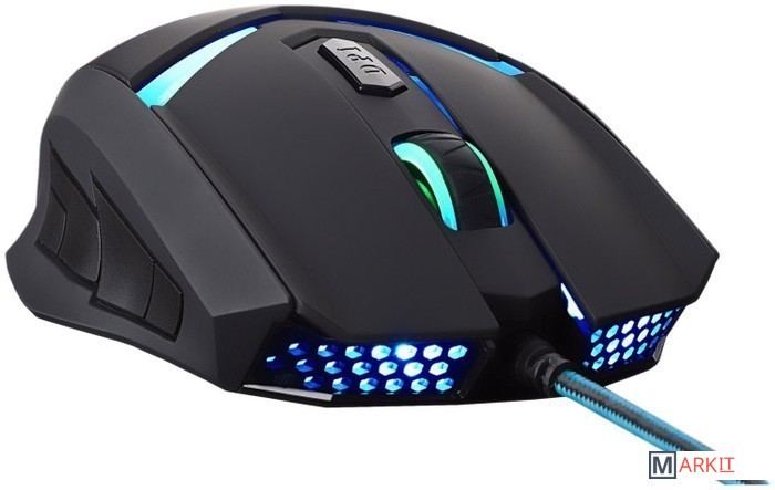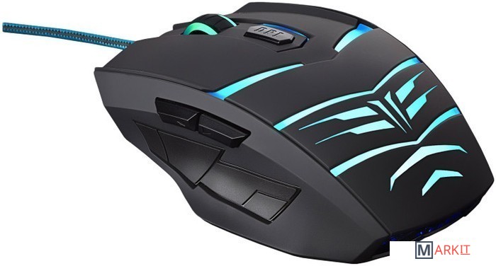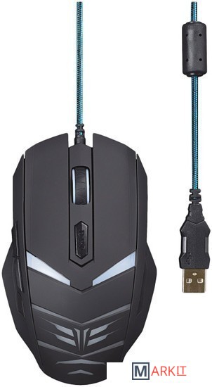 Корпус мыши выполнен из прочного АБС-пластика с покрытием soft-touch и имеет резиновые вставки по бокам, позволяющие с особым удобством держать мышь в руках на протяжении многих часов. Шнур длиной 1,6 м имеет плотную оплетку, устойчивую к истиранию, и установленный ферритовый фильтр, предназначенный для подавления высокочастотных помех.Проводная мышь обладает 6 элементами управления: удобное колесо прокрутки с прорезиненной серединой, правую и левую кнопки управления, кнопку изменения dpi, и две дополнительные кнопки управления, расположенные с левой стороны. При изменении dpi (три режима: 800-1600-2400) подсветка колеса прокрутки меняет интенсивность.