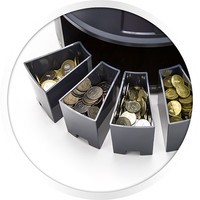 Емкость загрузочного лотка 1 600 банкнот/монет  (8 лотков)