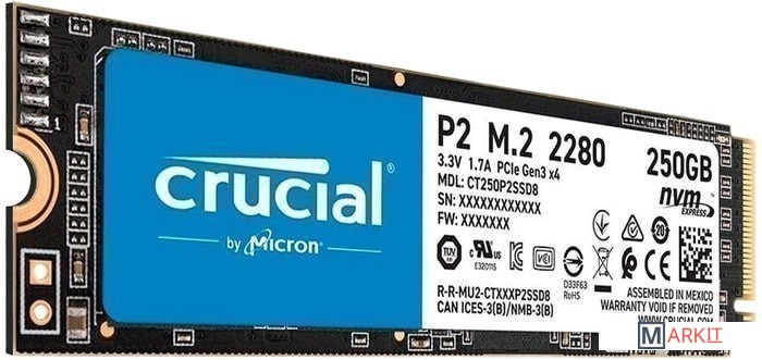 ВНИМАНИЕ. В первых версиях модели P2 использовались микросхемы 3D TLC. Затем компания Crucial обновила модель и начала устанавливать 96-слойную память 3D QLC.В 2022 году модель снова претерпела обновление и стала использовать 176-слойную TLC память. При заказе уточняйте, пожалуйста, у магазина, версию накопителя.